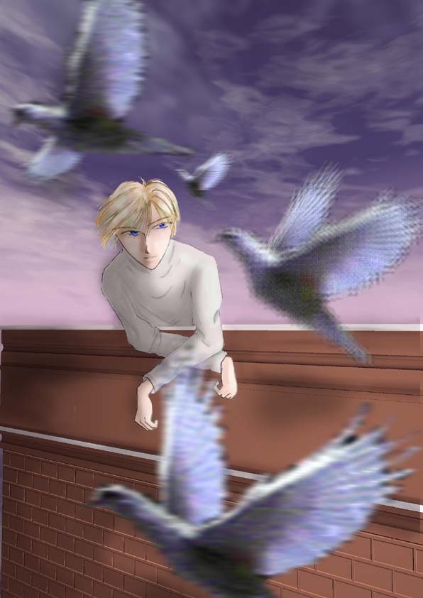 背景にもっといろいろなものを配置しようと考えたのですが、鳩とのバランスのためとりあえず塀だけです。